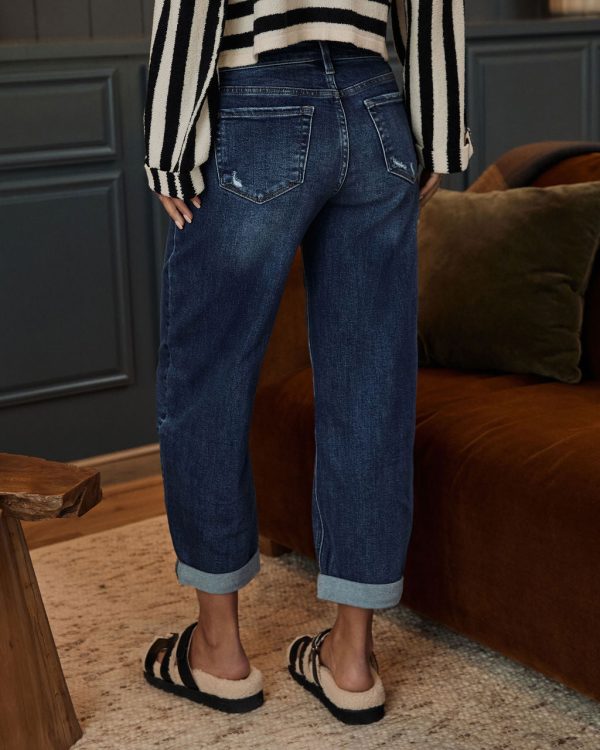 Embrace effortless style this winter with the Tawnie Distressed Barrel Jeans. Made from stretch denim fabric, these jeans offer ultimate comfort and flexibility, perfect for chilly days and active lifestyles. The light whiskering and intentional distressed areas add a trendy, lived-in edge, making them a standout piece. The relaxed barrel fit provides a flattering silhouette that pairs seamlessly with cozy knits, stylish boots, or your favorite winter coat.
