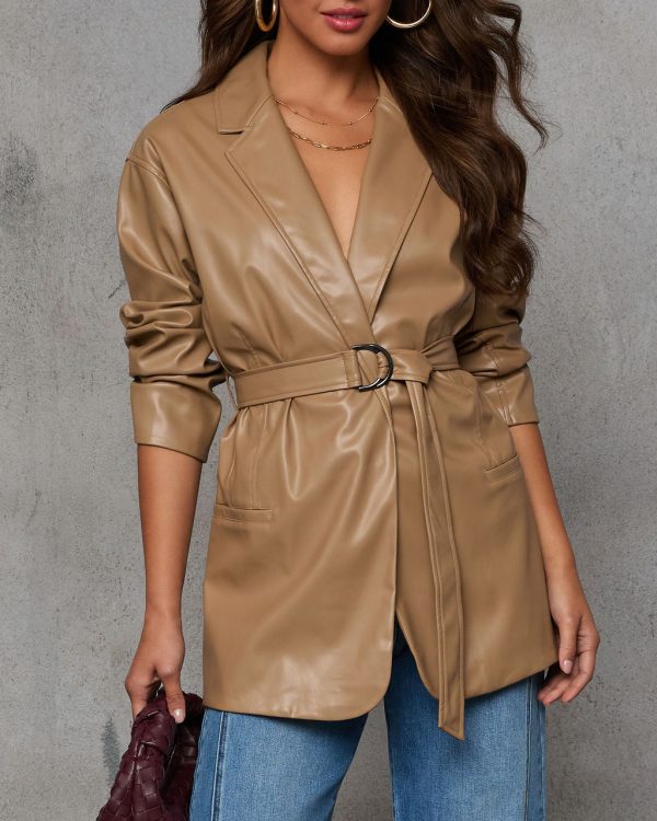 Bold, versatile, and endlessly cool, the Take Me Out Leather Belted Blazer is your ultimate statement piece for effortlessly chic day-to-night transitions. Made from smooth faux leather fabric, this blazer adds a sleek, modern edge to any look. The open front design gives it a relaxed vibe, while the detachable waist belt allows you to cinch your waist for a more structured silhouette when you’re ready to turn up the drama.