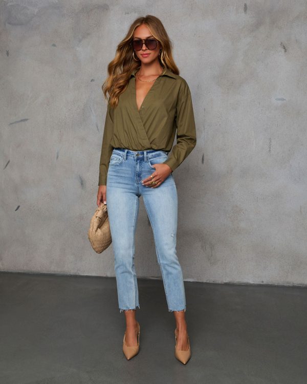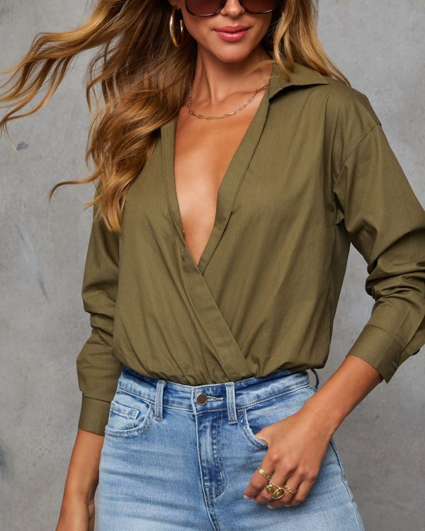 Discover effortless sophistication with the Keep On Collared Bodysuit—your essential for the new season. Crafted from crisp poplin fabric, this bodysuit features a chic surplice front with a mini snap button closure, adding a touch of refined detail. Perfect for layering under blazers or pairing with your favorite skirts, it’s a versatile staple that transitions seamlessly.