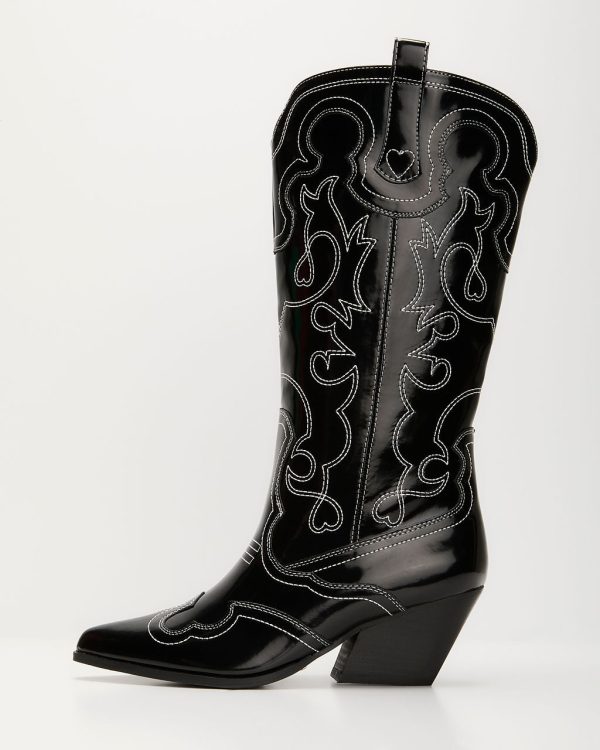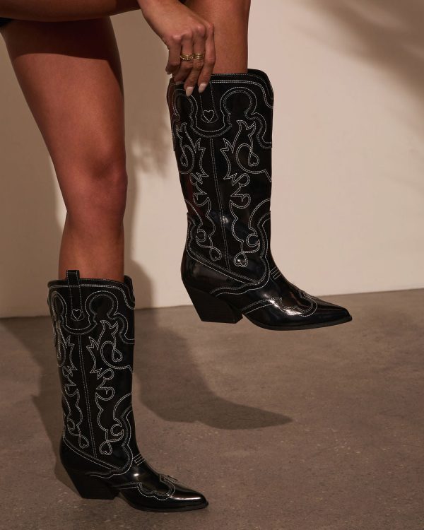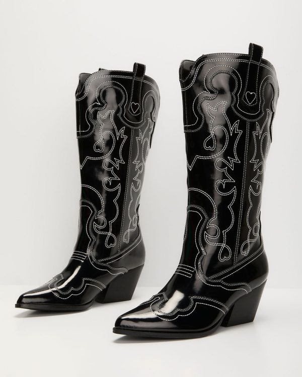 Step into the spotlight with the Festival Funk Stitched Western Boots. These eye-catching boots are designed for the bold woman ready to make a statement at any festival or night out. With their sleek pointed toe and stylish faux leather fabric, you’ll be turning heads with every step you take. The convenient pull-tabs at the sides make slipping these beauties on a breeze, while the intricate stitched western design adds a playful twist to your outfit.