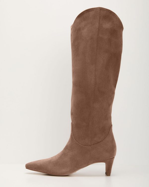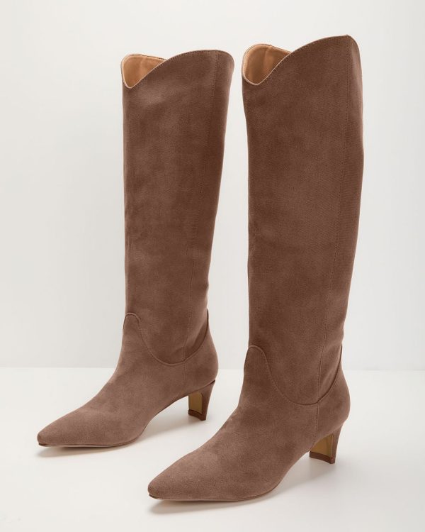 Put your best forward with grace and confidence in the Tread Lightly Kitten Heel Knee High Boots. Crafted from smooth suede, these boots exude effortless Western charm with their sleek pointed toe and elegant kitten heel. Perfect for adding a touch of sophistication to your autumn wardrobe, they offer a chic balance of style and comfort. Whether paired with a flowing maxi dress or your favorite denim, these knee-high beauties bring a hint of style your wardrobe needed.