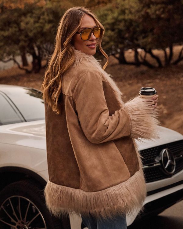 Keep things cozy and chic with the Harley Suede Faux Fur Trim Jacket. The smooth suede fabric brings a luxe vibe, while the shaggy faux fur trim adds a touch of glam that’s perfect for frosty days. A plush fleece lining ensures you stay warm without sacrificing style, and the front hook-and-eye closure keeps the silhouette sleek and elegant.
