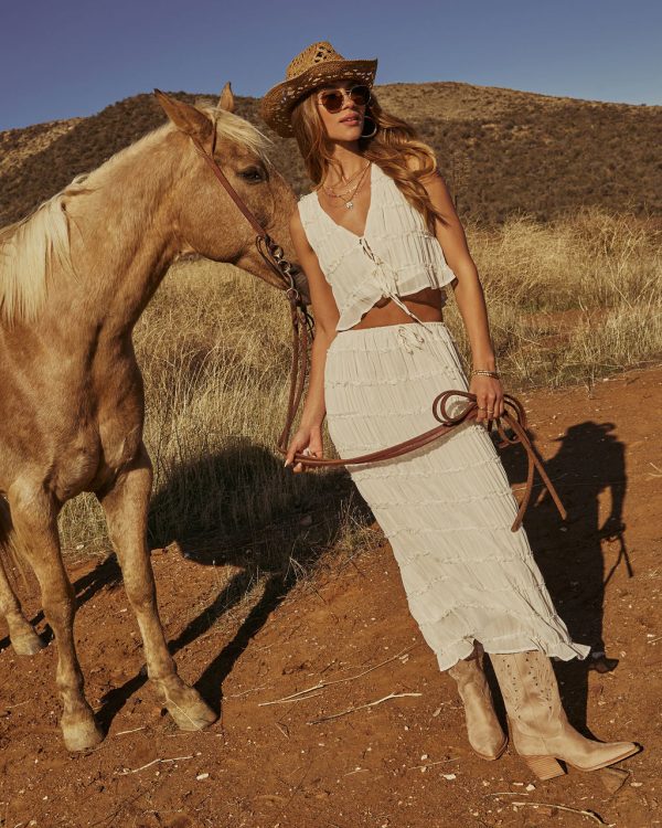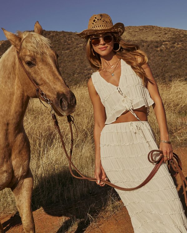VICI Day Events Sets | Women Celestial Haven Chiffon Front Tie Top Cream