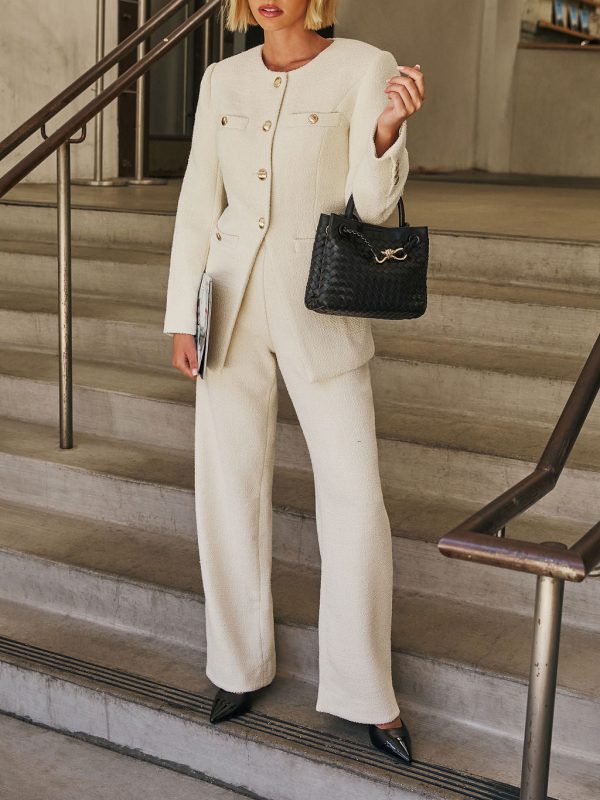 Take hold of the romance of the season with a look that’s always in style with the Kayleen High Rise Tweed Trouser. Your new favorite piece for autumn elegance, made from midweight tweed, these trousers offer a touch of French sophistication with a modern twist. The high-rise fit elongates the legs, while the hidden side zipper keeps the silhouette sleek and seamless. Pair with the matching Kayleen Tweed Jacket (sold separately) to complete the look.