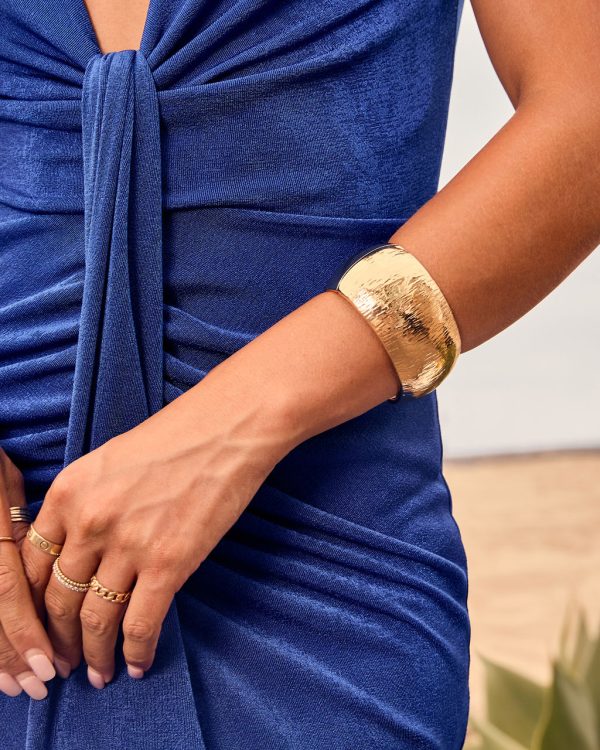 Elevate your style with the stunning Donda Textured Bangle Bracelet in luxurious gold. This exquisite piece features a premium 18K gold-plated finish over durable stainless steel, creating a sophisticated accessory that catches the light beautifully. Perfect for both casual daytime wear and elegant evening occasions, its secure hinge closure ensures easy wear while maintaining a seamless look. The dimensional texture adds captivating visual interest that complements any outfit, and its versatile design mixes effortlessly with your existing jewelry collection for a personalized layered effect.