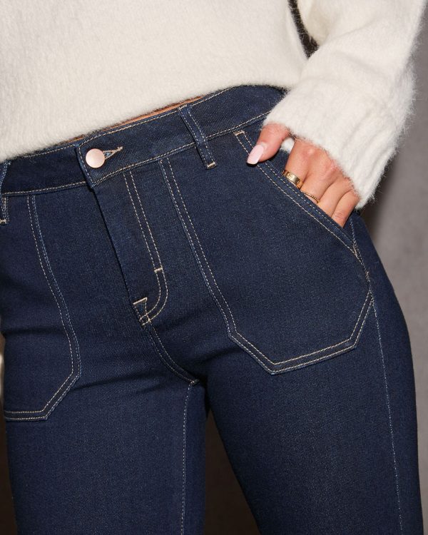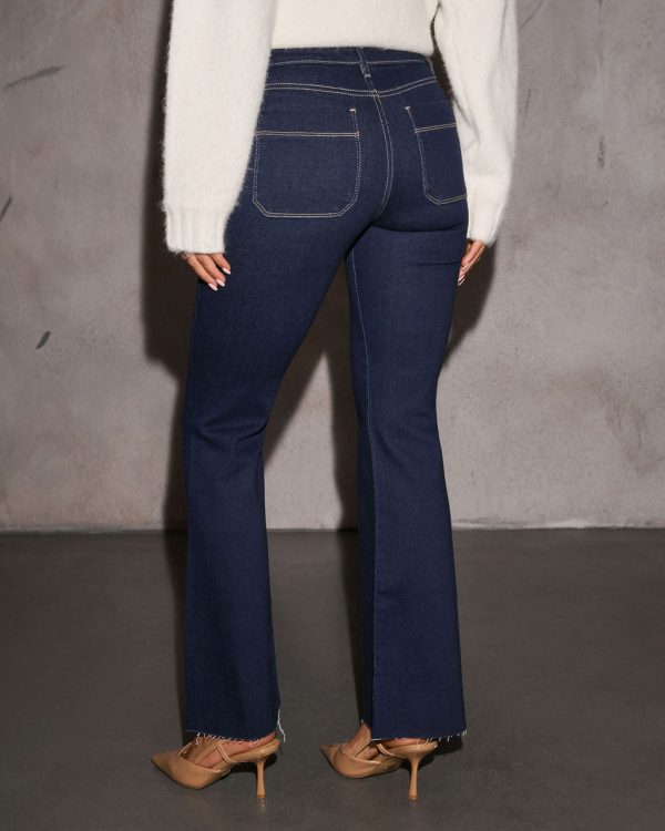 Add a fun and festive twist to your denim game with the Annabella Flare Hem Jeans. Made from comfortable stretch denim fabric, these jeans offer a flattering fit that hugs your curves and flows into a playful flare hem, perfect for making a statement this holiday season. The contrast stitching adds a touch of edgy detail, making these jeans anything but ordinary.