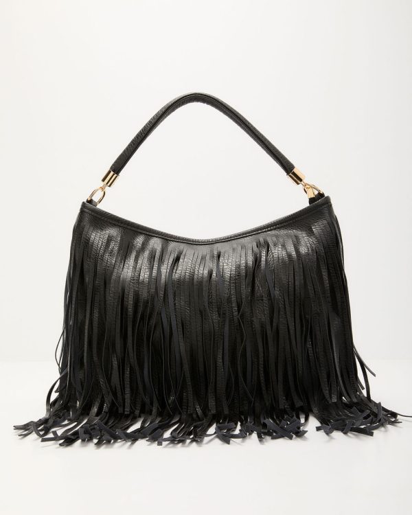 Meet the bag that knows how to make an entrance. The Marna Fringe Faux Leather Bag brings all the movement, mood, and main character energy with its tiered fringe that shimmies with every step. Sleek faux leather gives it an edge, while the optional adjustable strap lets you switch from shoulder-sling to handheld in seconds. Finished with a secure top zipper to keep your treasures tucked away, this piece is your go-to for adding a little drama (the good kind) to your look.