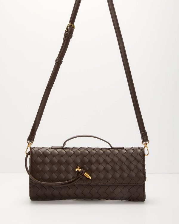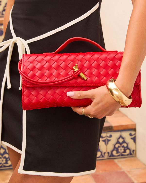 Perfect for everything from festive gatherings to cozy date nights, the Porta Woven Leather Top Handle Clutch is the perfect choice. This clutch features a stunning woven faux leather texture that adds a sophisticated yet relaxed vibe to any festive outfit. Whether you carry it by the top handle for a polished feel or wear it crossbody for an on-the-go moment, the Porta clutch is here to elevate your holiday style.
