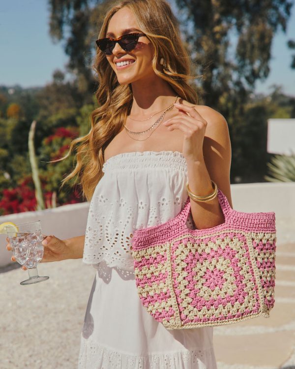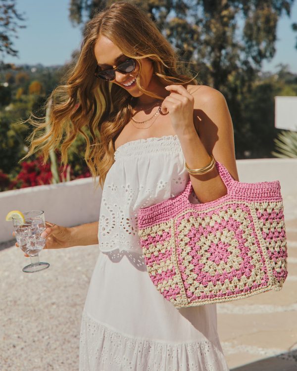 Say hello to your summer statement piece. The Summer Rose Geometric Straw Tote Bag brings sunshine vibes and standout style in one effortless swoop. Designed in woven straw and finished with a bold geometric print, it’s the kind of bag that turns errands into mini getaways and brunch into a photo-op. The open top with a magnetic closure makes tossing in your essentials a breeze, whether it’s sunscreen and sunnies or your favorite paperback.