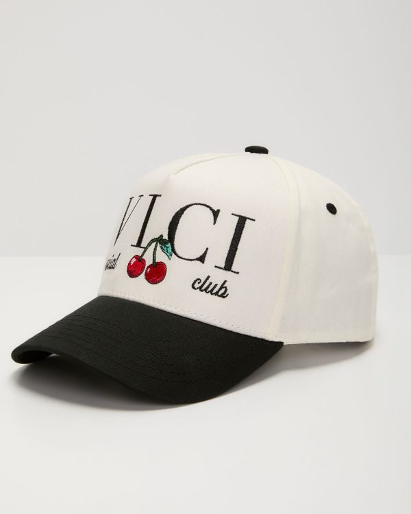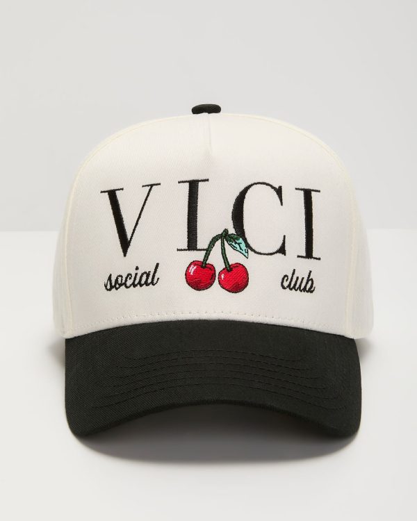 Top off your look with a playful twist with the VICI Social Club Embroidered Cherries Hat is the perfect mix of fun and effortlessly cool. Featuring delicate embroidered cherries alongside our signature VICI Social Club logo, this hat brings a splash of personality to any outfit. The classic 5-panel design and contrast curved brim keep it timeless yet trendy, making it the ultimate accessory for sunny beach days or casual brunch plans.