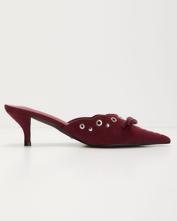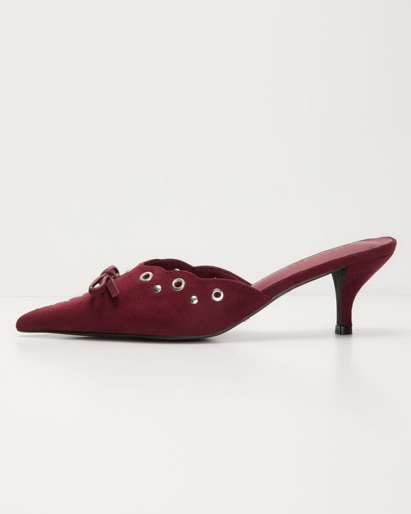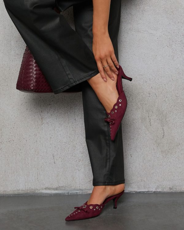 Embrace your inner trendsetter with the Maven Grommet Hole Pointed Toe Mule, a standout piece from the exclusive Billini x VICI collection. Crafted from smooth faux suede, these mules are the epitome of chic with a rebellious edge. The grommet hole detailing adds a modern twist, while the bow accent at the pointed vamp brings a touch of femininity to this daring design. Slip into these mules effortlessly for a look that’s both bold and sophisticated.