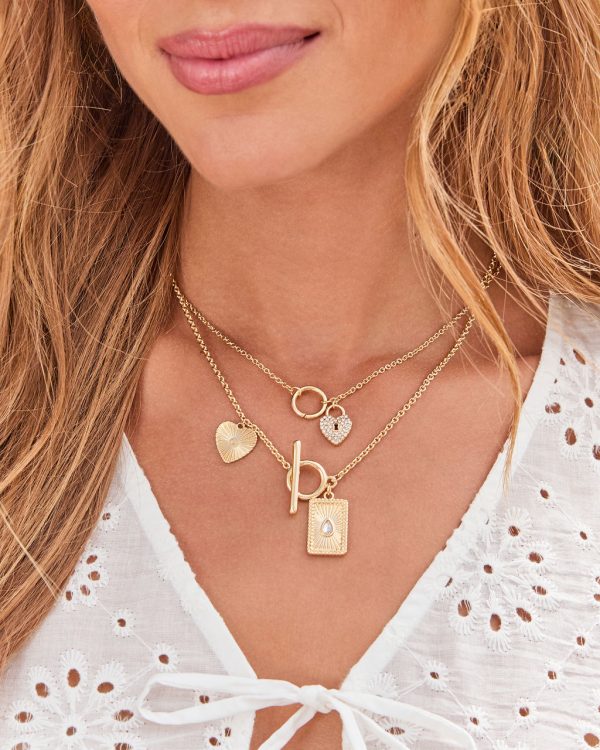 Unlock your signature sparkle with the Deina Multi Charm Necklace, a golden medley of chic vibes and playful energy. This gold-tone plated brass beauty dangles with a variety of unique charms that tell your story with every step. Perfect for layering or wearing solo, it’s the effortless detail that elevates your look from casual cool to unforgettable glam.