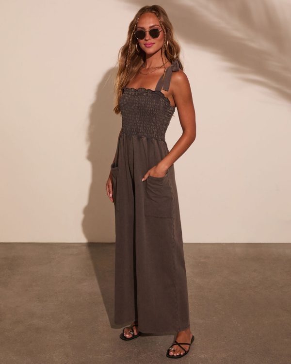 The Wild Dunes Shoulder Tie Jumpsuit is your ticket to bohemian summer ease. With its pleated twill fabric and smocked bodice, this one-piece wonder is as flattering as it is comfortable. Adjustable shoulder ties let you play up the charm, while side slant pockets keep it casual. Whether you’re barefoot in the sand or slipping on block heels for a sunset dinner, this jumpsuit moves with you and brings the vibe.