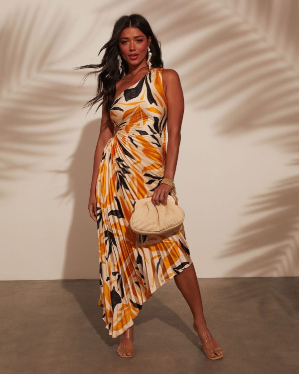 Make a stunning entrance at your next special event with this contemporary glamour-inspired maxi dress. The elegant pleated design and dramatic asymmetrical hem create a fashion-forward silhouette that commands attention.