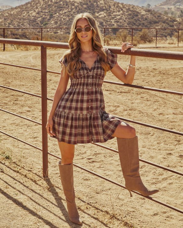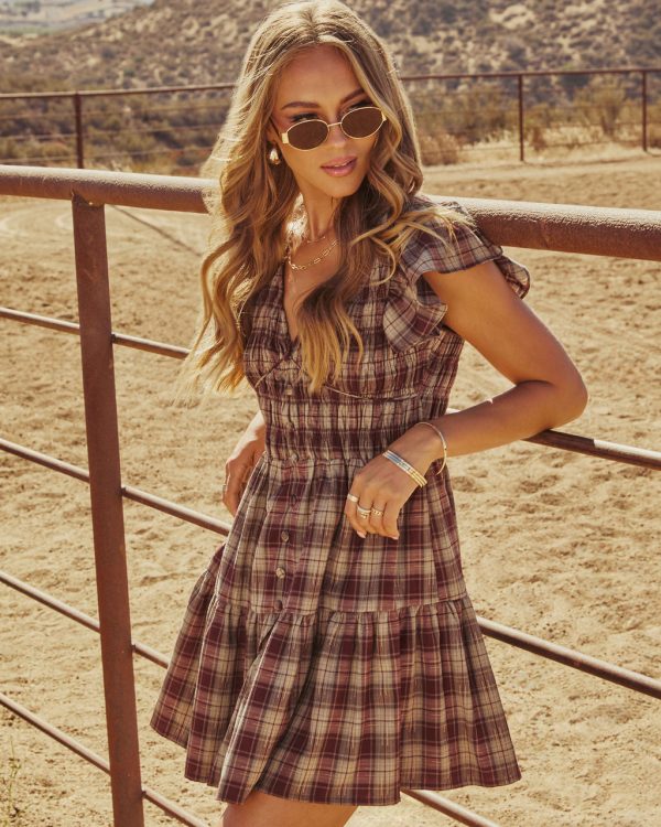 VICI Mini | Women Peggie Smocked Plaid Mini Dress Burgundy Plaid