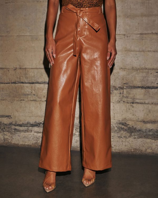 A perfect blend of edgy cool and feminine sophistication is the Hudgens Faux Leather Wide Leg Trouser. Crafted from smooth faux leather, these trousers offer a sleek, rebellious vibe that’s perfect for date night. The high-rise cut and wide leg create an effortlessly chic silhouette, while the back slip pockets add a touch of practicality. Complete your look with the detachable waist tie, which lets you play with styles and elevate your ensemble.