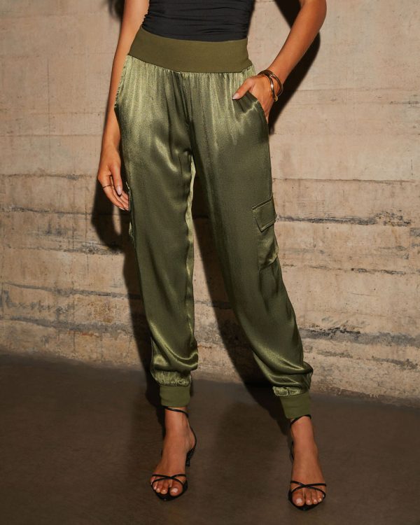 Look effortless and put together in the Luxe Look Satin Pocketed Joggers that feature a high rise waist.