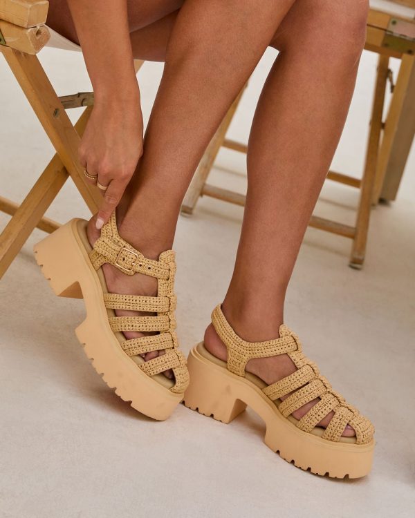 Perfect for sunny adventures, these Samantha Woven Platform Sandals are sure to keep you comfortable all day long. The stylish ankle strap with buckle closure ensures a secure fit while adding a hint of sophistication to your look. Made from beautifully braided woven raffia, these sandals bring a touch of laid-back luxury to any outfit.