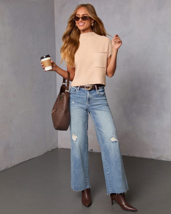 VICI Short Sleeve & Sleeveless | Women Brooke Mock Neck Short Sleeve Sweater Navy