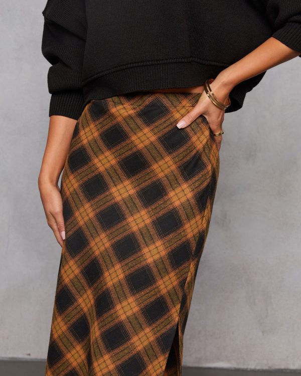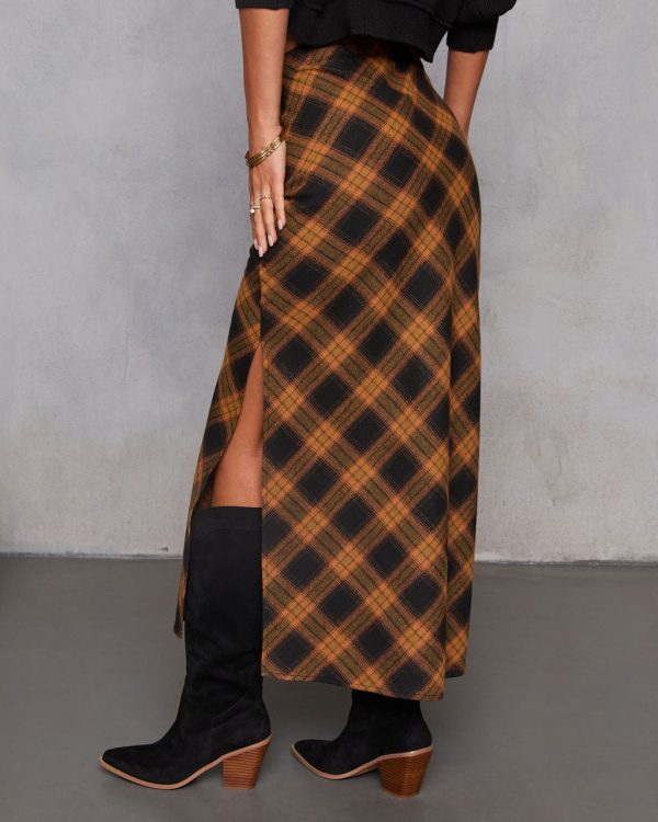 Step into your fall era with the Autumn Chapter Plaid Maxi Skirt. Made from soft brushed flannel in a timeless plaid, this skirt gives major seasonal energy with zero effort. The rigid fabric holds its shape for that clean, structured look, while the interior elastic waistband keeps things comfy behind the scenes. A side slit at the hem adds just the right hint of edge, letting your boots or heels do a little talking.