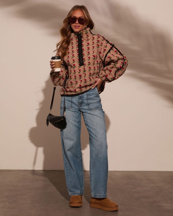 Brighten up your winter wardrobe with the Pauleen Floral Quarter Zip Sweatshirt, where cozy meets chic in full bloom. Made from soft knit fabric, this sweatshirt keeps you warm while the vibrant floral print adds a playful pop of color. The partial front zipper closure lets you style it your way, and the contrast trims give it a polished, modern edge.