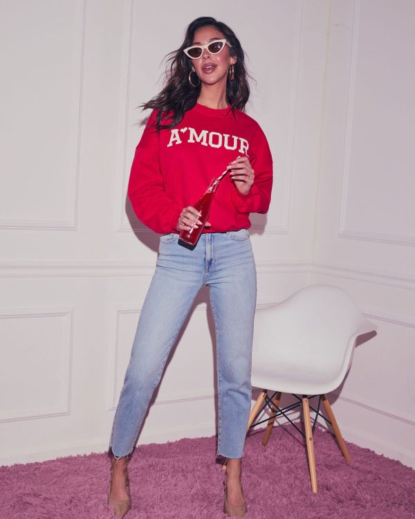 Cozy up in love with the Sweet Amour Graphic Sweatshirt, a dreamy blend of comfort and romance. Made from soft jersey fabric with a plush fleece lining, this sweatshirt wraps you in warmth while keeping your style effortlessly chic. The front screen print script adds a playful, flirty touch, while the stitched heart design at the back brings a sweet surprise that’s perfect for Valentine’s vibes.