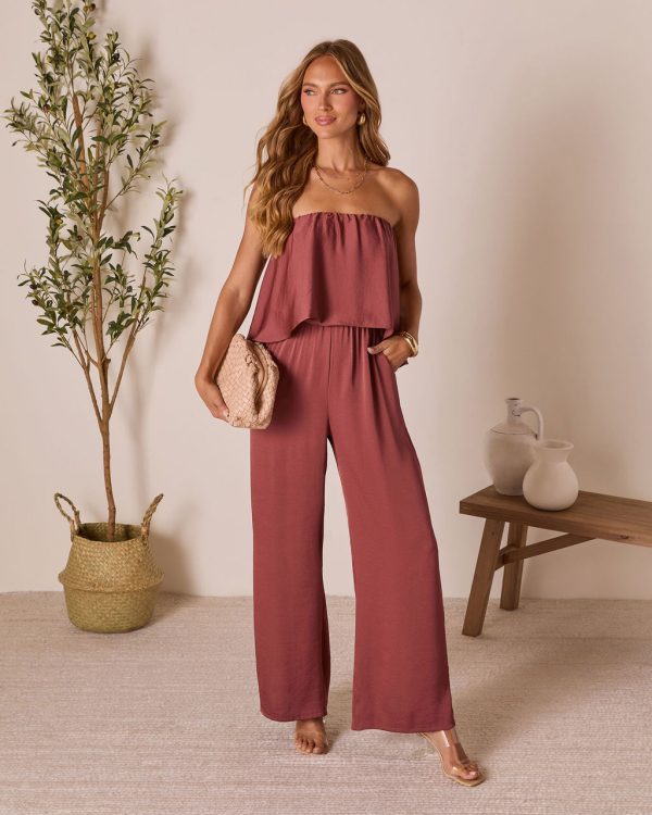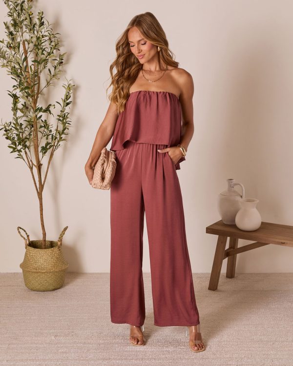 Step into the Thistle Muse Strapless Jumpsuit and instantly elevate your evening look. This sophisticated strapless design transforms casual outings into memorable occasions with its effortlessly chic appeal. Crafted from luxurious crepe satin, it creates a stunning light-catching effect that commands attention. The elegant elastic neckline features a graceful draped overlay for a feminine, flowing silhouette, while the cinched waistband provides flattering definition without compromising comfort.