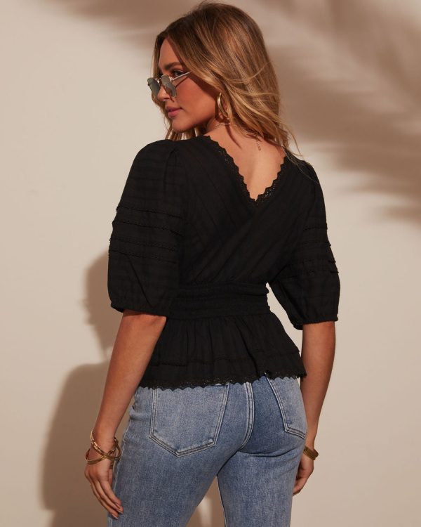 Elevate your wardrobe with the Hadlee V-Neck Peplum Blouse, where timeless elegance meets contemporary style. Designed with premium midweight fabric and exquisite lace trim, this blouse features statement puff sleeves with elastic cuffs for a polished, vintage-inspired look. The strategically placed smocked waist creates a beautifully flattering silhouette that transitions effortlessly from daytime chic to evening sophistication. Perfect for pairing with your favorite skirts or trousers, this versatile top delivers exceptional comfort and style for any occasion.