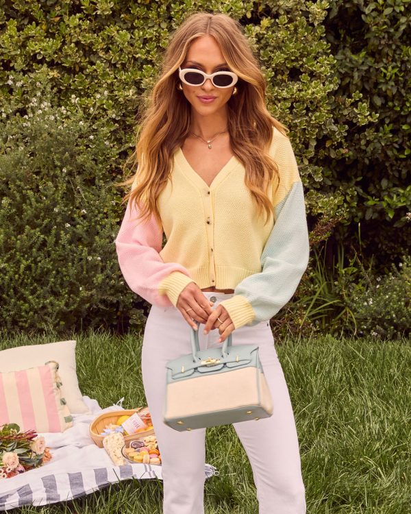 Elevate your spring style with the Laylah Colorblock Cardigan, featuring the perfect balance of comfort and contemporary design. Crafted from premium textured knit fabric, this cardigan delivers both exceptional softness and modern appeal. The striking colorblock pattern creates eye-catching visual interest, while the front button closure offers versatile styling options – wear it open for casual elegance or fully buttoned for a refined finish.