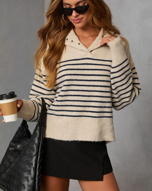 Refresh your autumn wardrobe with the Lidiah Striped Pullover Sweater, a stylish take on cozy essentials that you’ll want to wear again and again. This comfortable knit top features a high neckline ideal for layering and partial front button closures that add contemporary flair. The contrasting striped pattern seamlessly combines timeless appeal with modern style, making it your perfect choice for everything from weekend outings to casual social gatherings.